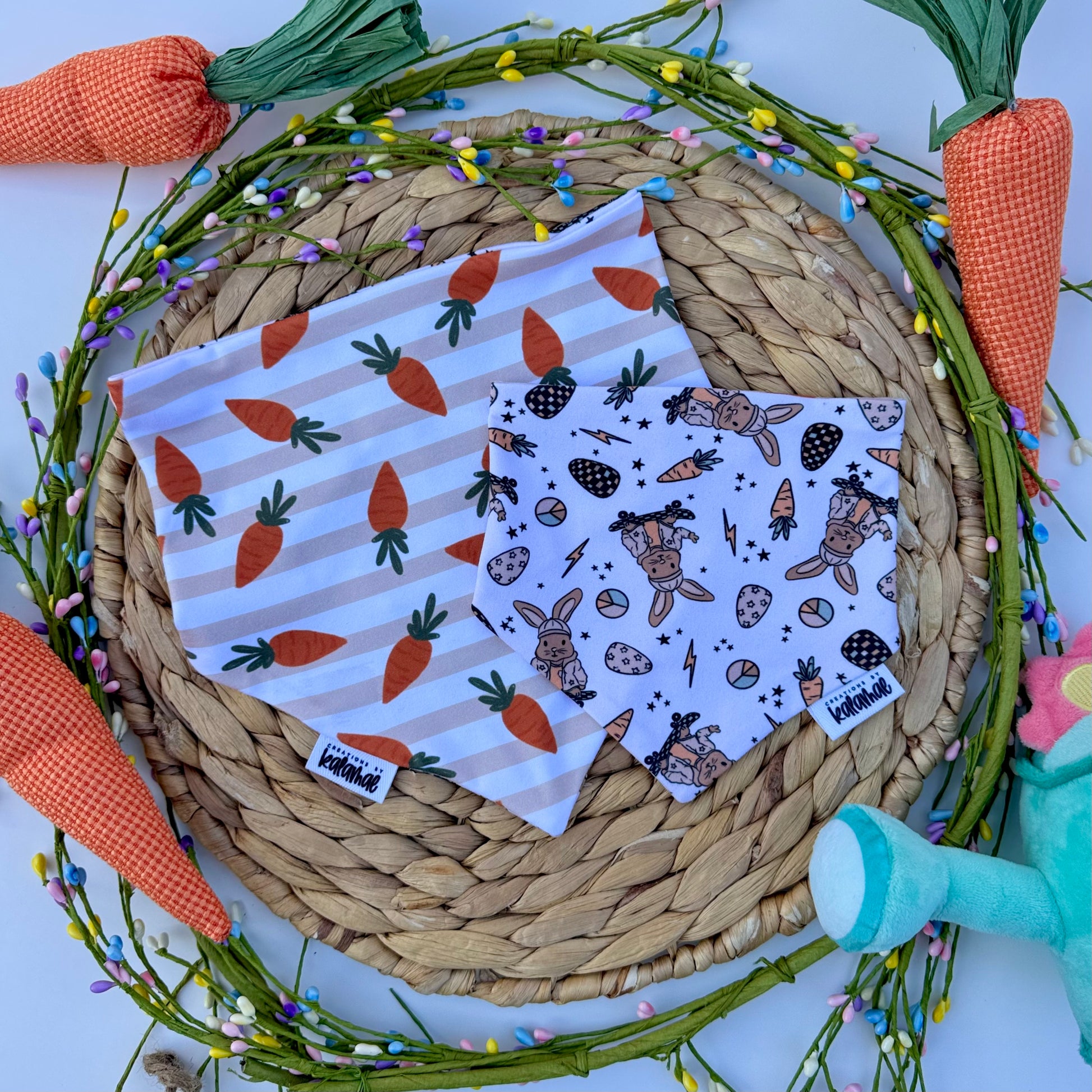 All bandanas have a buttery soft knit material containing 96% polyester and 4% Spandex and are perfect for picky pups.